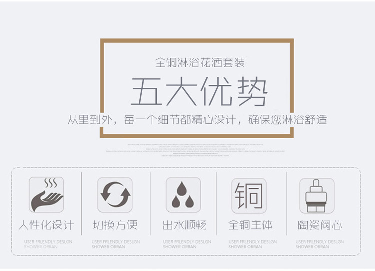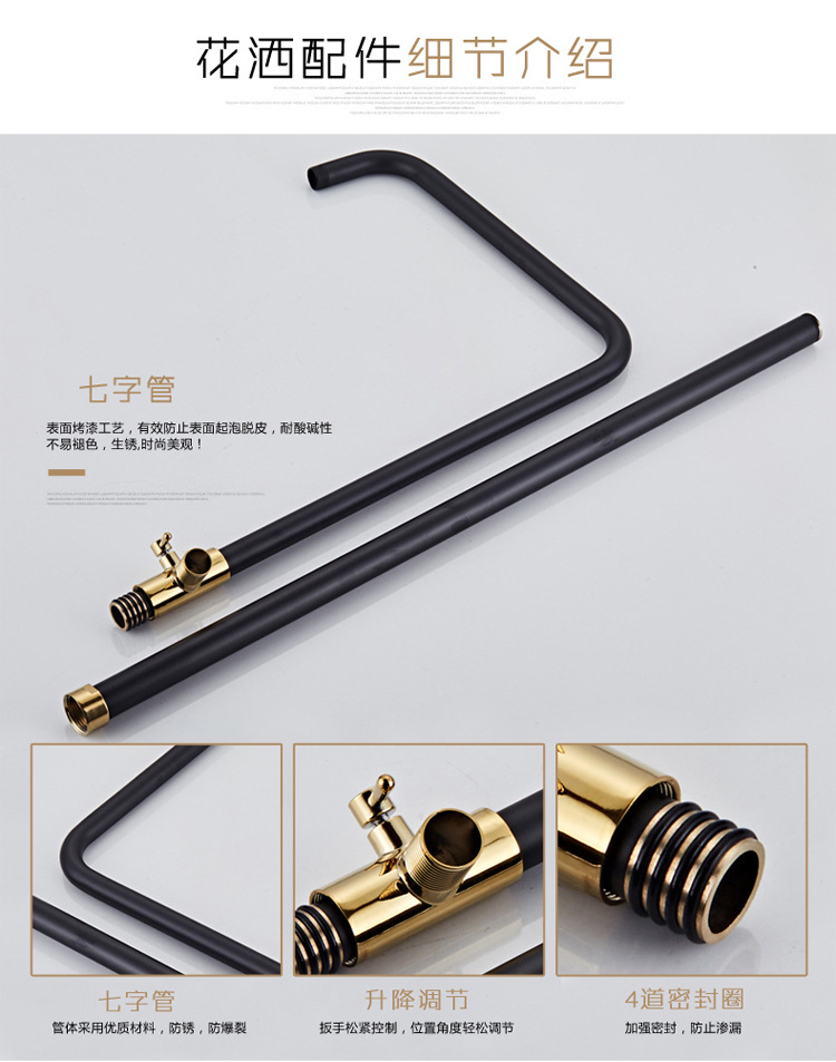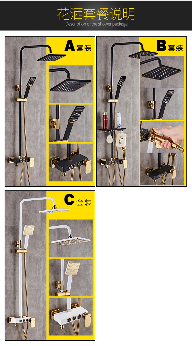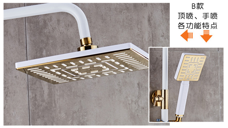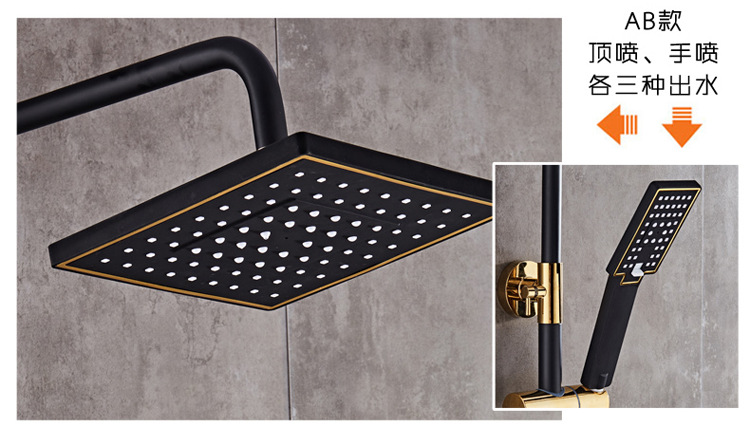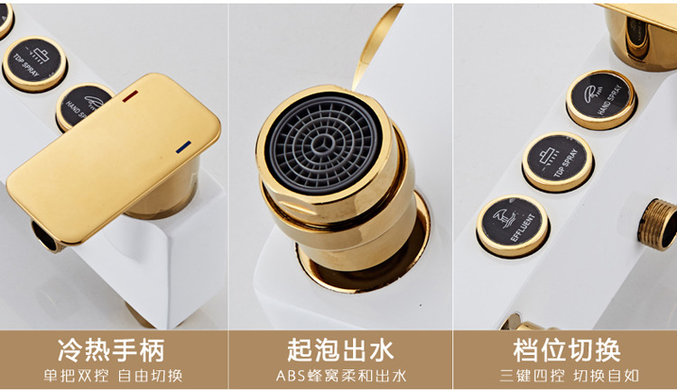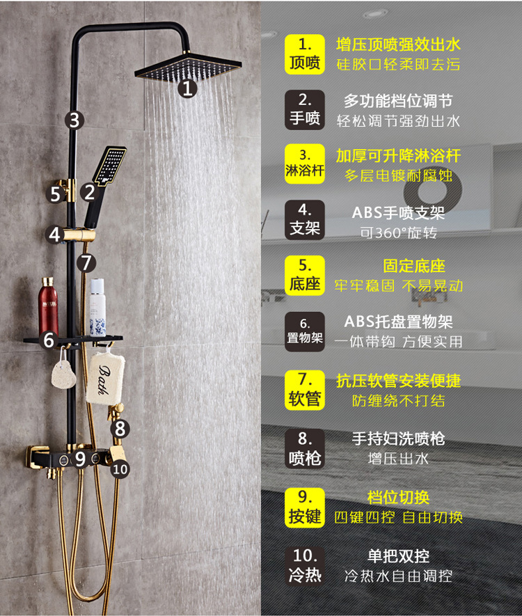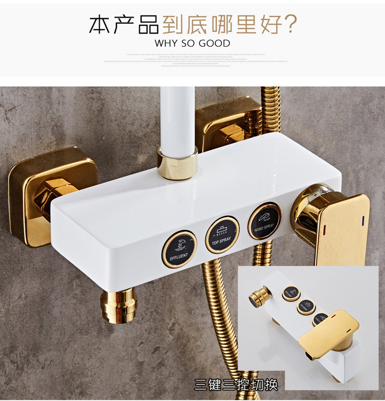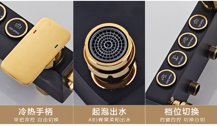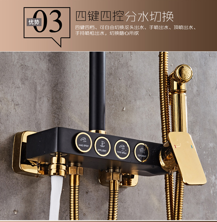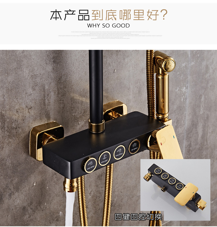 厂家批发黑金按键四挡欧式烤漆瓷白黑色带喷枪复古高档淋浴套装