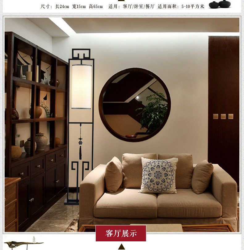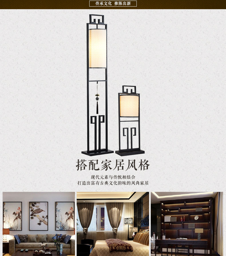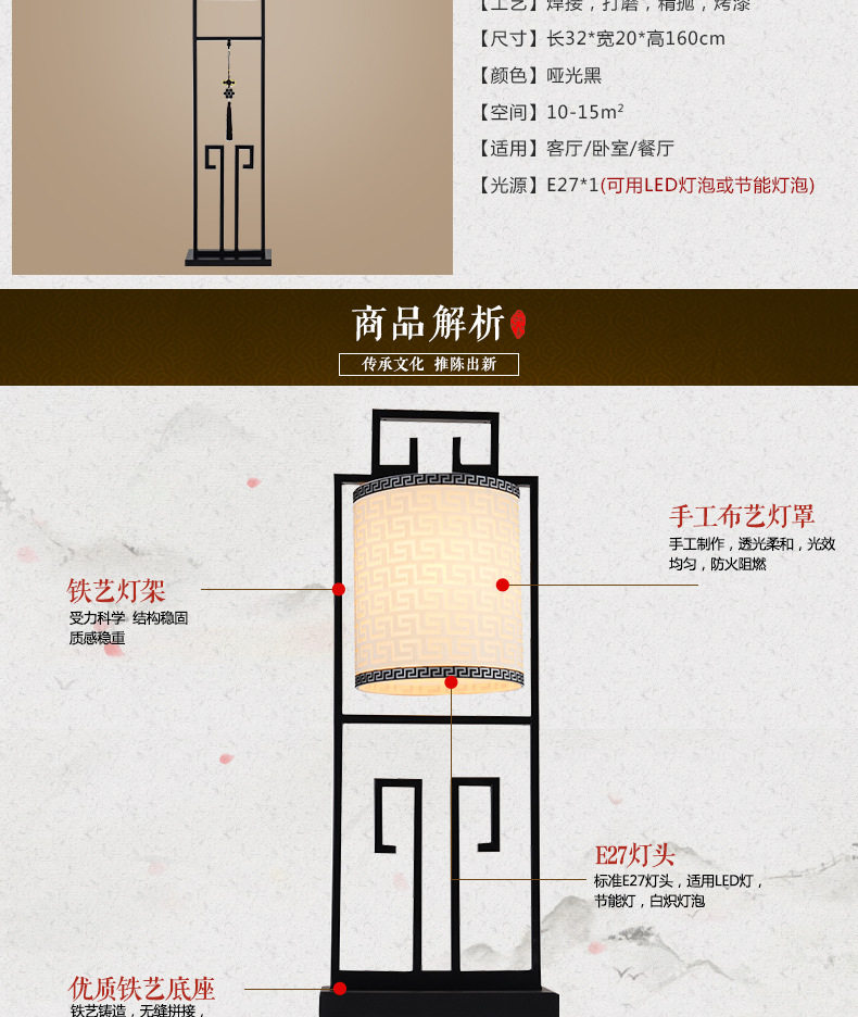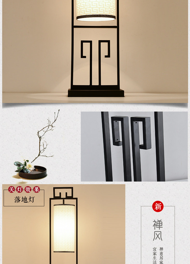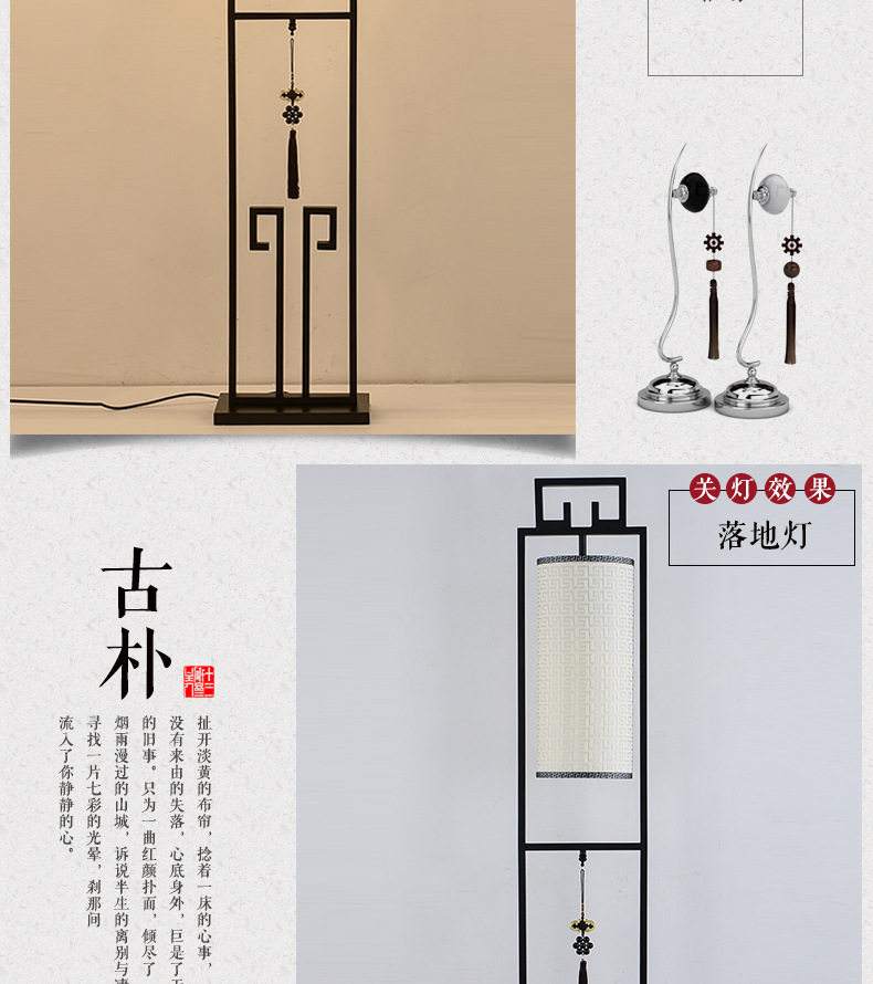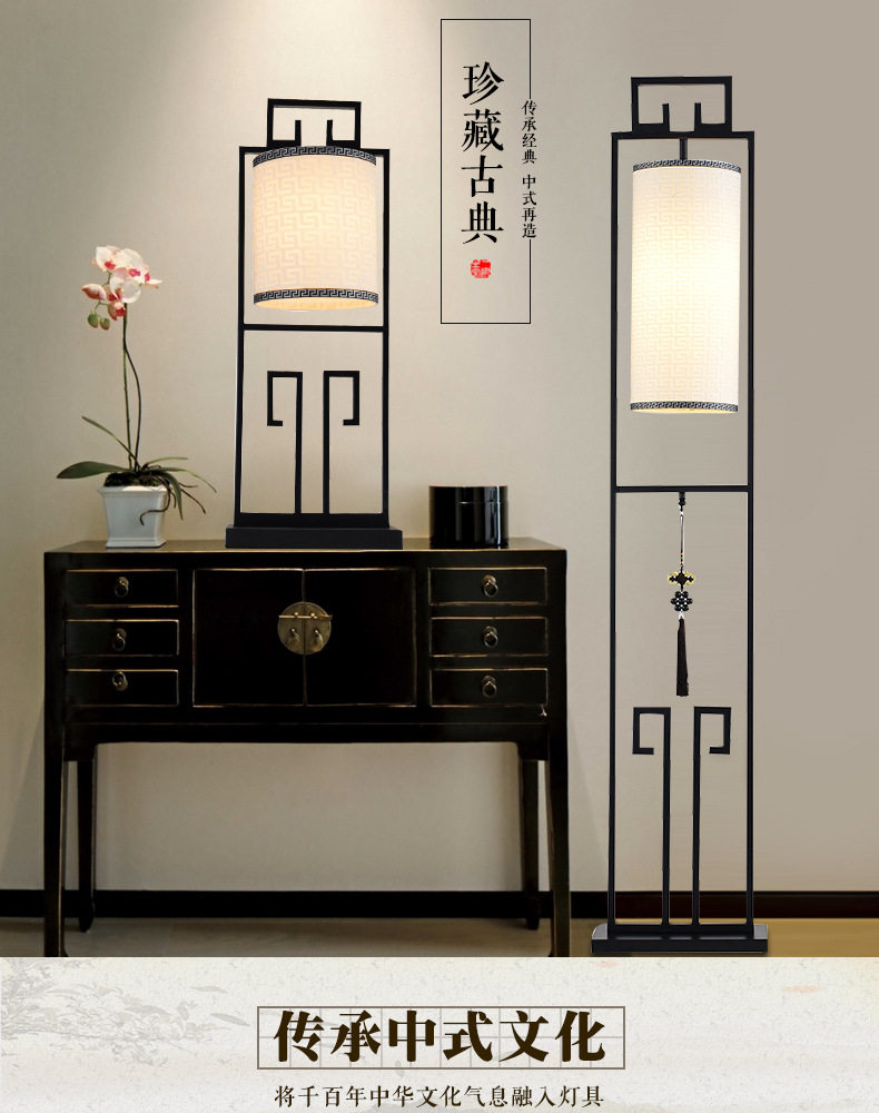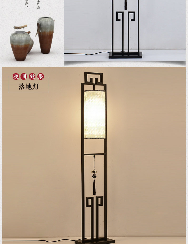 創意新中式鐵藝落地燈仿古布藝檯燈簡約客廳燈具中式床頭立式檯燈