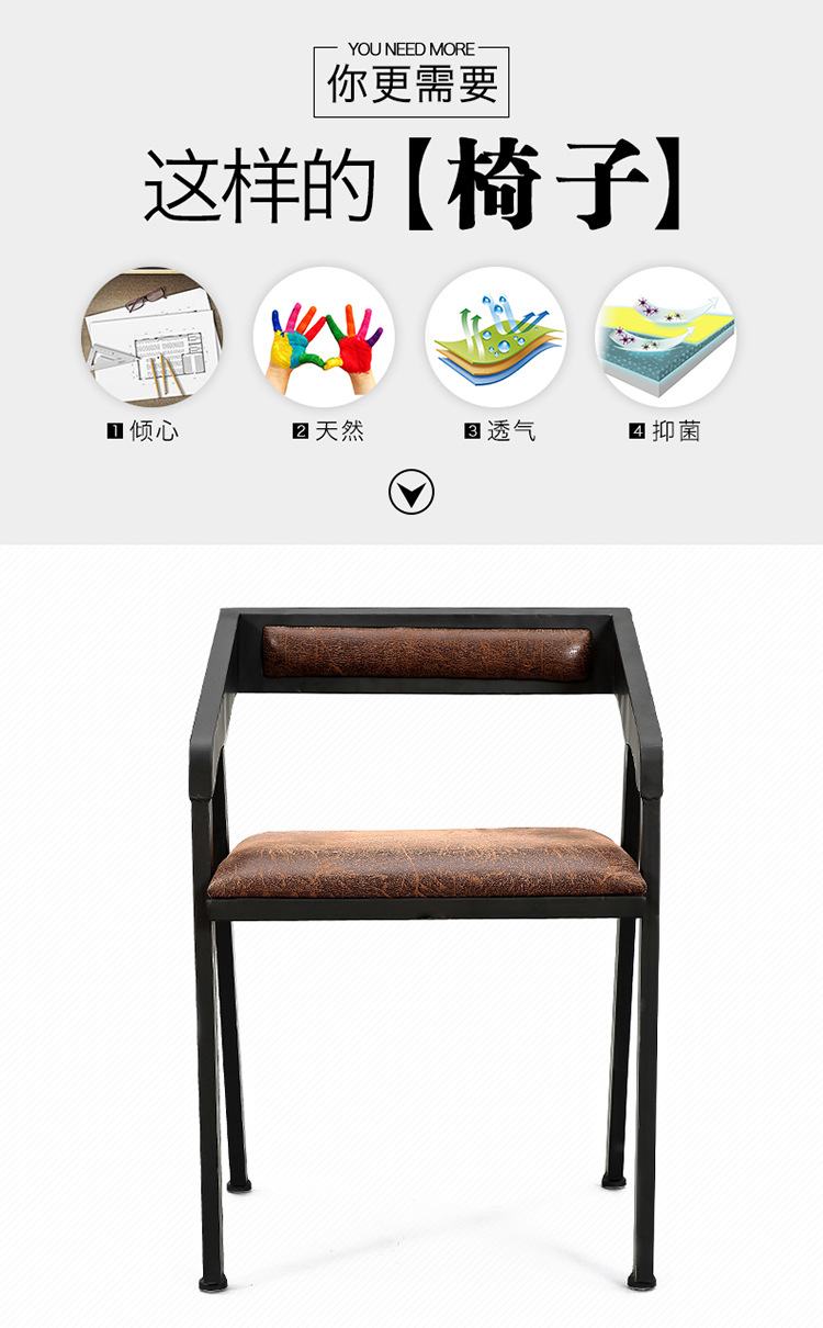 美式鐵藝仿實木書椅靠背餐椅休閒辦公電腦椅子北歐設計師椅子凳子