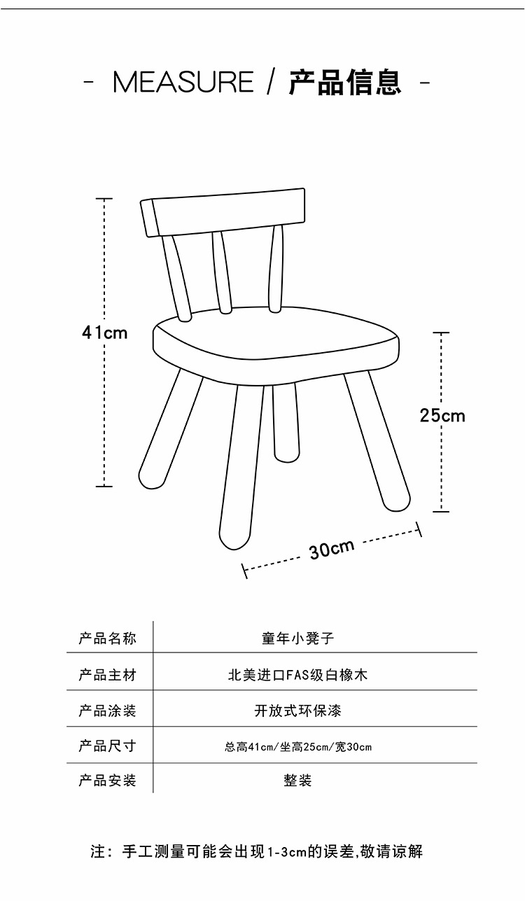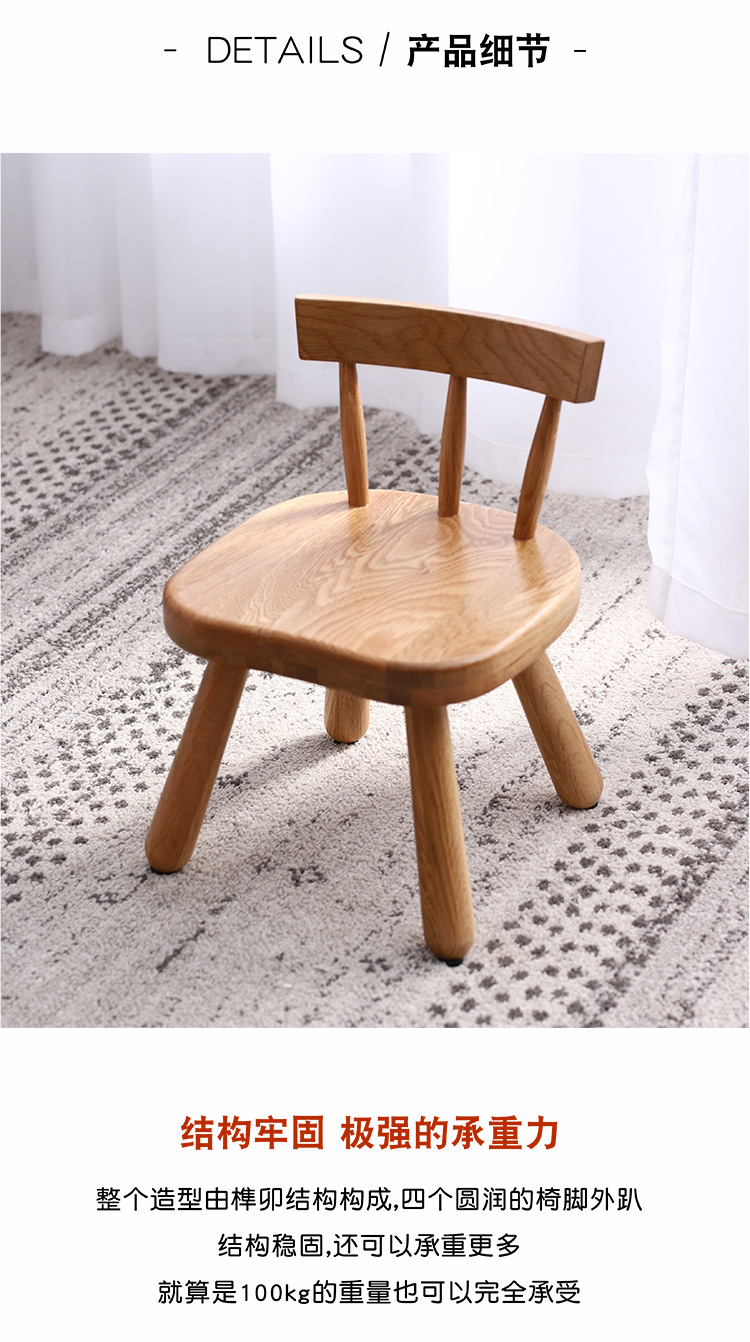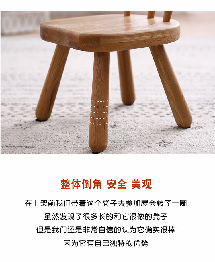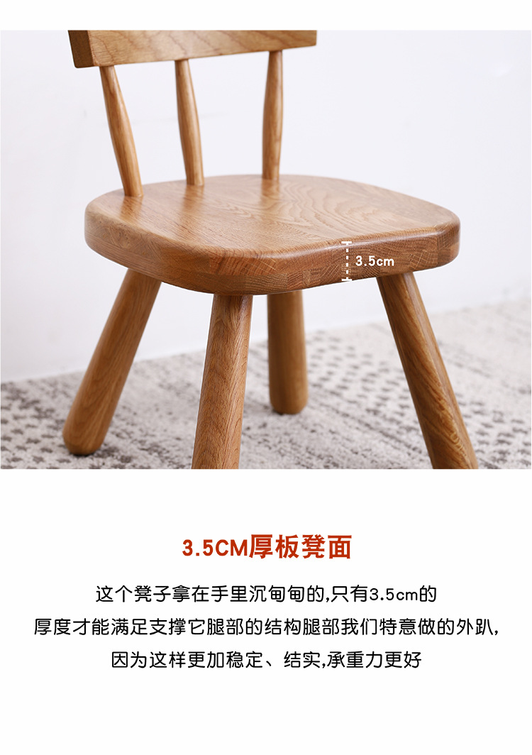 管木匠白橡木實木凳兒童小椅子凳子可愛卡通靠背童年小凳子