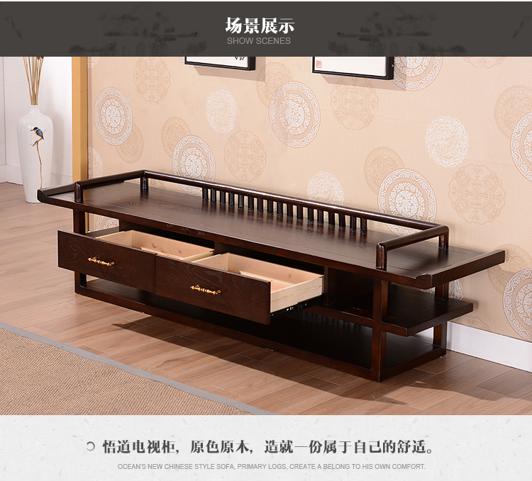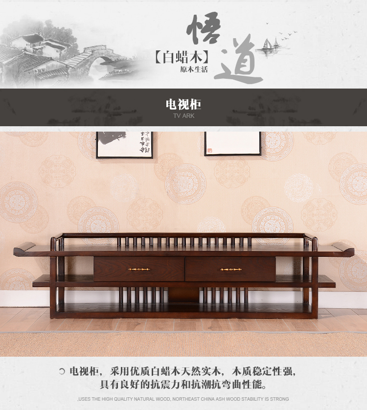 新中式實木電視櫃現代中式禪意茶几電視櫃組合客廳地櫃樣板房家具 (电视柜1900*420*460)