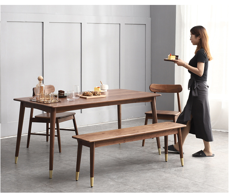 管木匠北歐實木餐桌椅組合黑胡桃木飯桌小戶型現代輕奢長方形餐桌